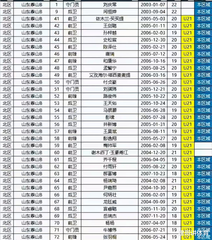 泰山B队大名单,4门将都很强
